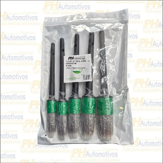 Kit com 5 pincéis de tamanho médio, ideal para limpeza automotiva interna com precisão e qualidade. Desenvolvido para facilitar o acabamento.