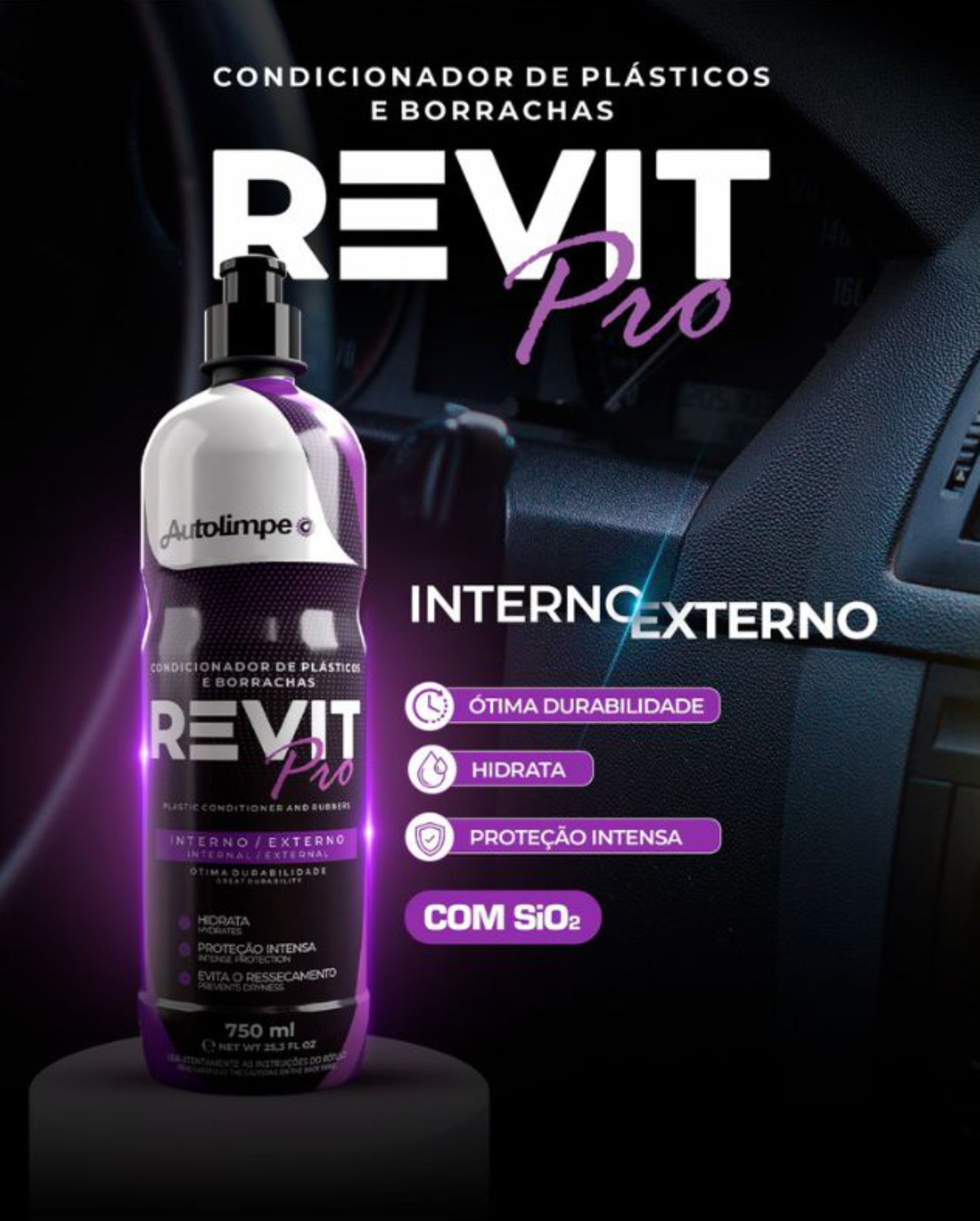 Ao utilizar o Revit-Pró, você notará a diferença na aparência do interior do seu carro, com um acabamento brilhante e renovado que traz vida ao painel e aos acabamentos em plástico. Além disso, o produto é de fácil aplicação, permitindo que você mantenha seu veículo sempre com uma aparência de novo. Ideal para quem deseja cuidar do seu carro com qualidade e eficiência, o Revit-Pró também é uma ótima opção para uso em acessórios de borracha e plásticos em geral. Experimente e comprove a proteção intensa e a hidratação que o Revit-Pró oferece, garantindo um carro sempre impecável e protegido!