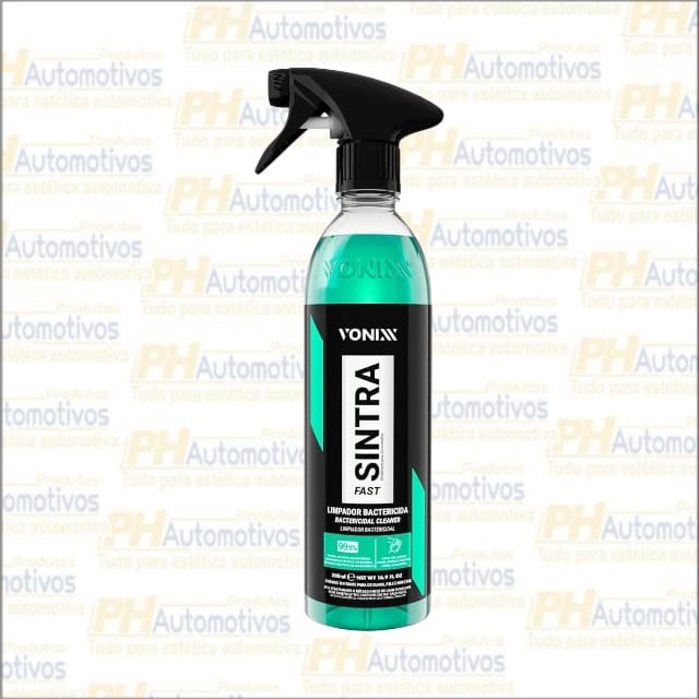 Sintra Fast é um multilimpador flotador universal, bactericida e germicida de pH balanceado, indicado para limpeza de painéis, laterais e cantos de portas, bancadas de couro, carpetes e estofados. Promove alto poder de remoção de manchas de gordura e sujeiras diversas, além de eliminar microrganismos causadores de doenças no interior do veículo. Sintra Fast diminui maus odores no interior do veículo, tornando-o mais saudável e livre de impurezas.